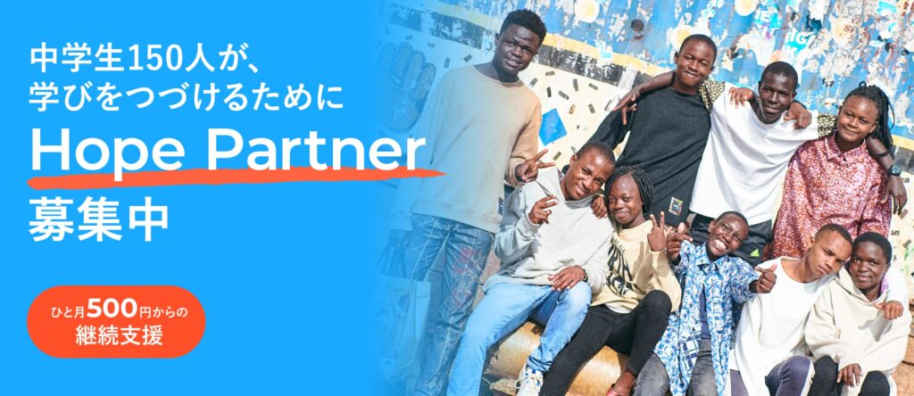 「やさしさアクション」という一歩を踏み出してくださったあなたへ。もう一歩、継続的なサポートという形で、子どもたちの未来を支えてみませんか? SHIFT80では、毎月のご寄付で子どもたちの学びや健康を支える「ホープ・サポーター」を募集しています。